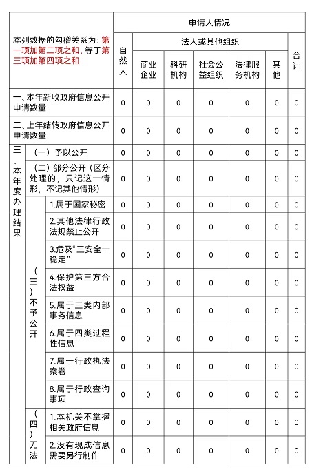 本報(bào)告依據(jù)《中華人民共和國政府信息公開條例》(國務(wù)院令第711號(hào),以下簡稱新《條例》)和《國務(wù)院辦公廳政府信息與政務(wù)公開辦公室關(guān)于印發(fā)<中華人民共和國政府信息公開工作年度報(bào)告格式>的通知》(國辦公開辦函〔2021〕30號(hào))》要求,由左云縣市場監(jiān)督管理局結(jié)合有關(guān)統(tǒng)計(jì)數(shù)據(jù)編制。本年度報(bào)告中所列數(shù)據(jù)的統(tǒng)計(jì)期限自2024年1月1日起至2024年12月31日止。全文包括主動(dòng)公開、依申請公開、政府信息管理、平臺(tái)建設(shè)、監(jiān)督保障(含《中華人民共和國政府信息公開條例》第五十條第四項(xiàng)規(guī)定的各級(jí)人民政府“工作考核、社會(huì)評(píng)議和責(zé)任追究結(jié)果情況”)等方面。