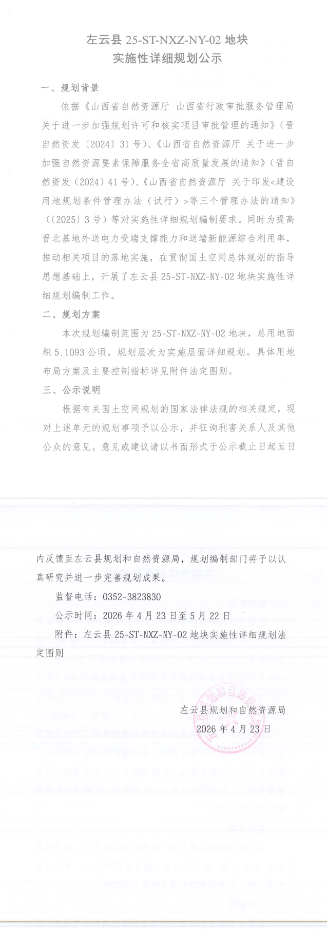 左云縣25-ST-NXZ-NY-02地塊實(shí)施性詳細(xì)規(guī)劃公示