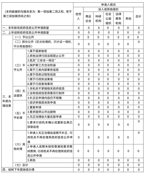我單位共收到政府信息公開申請0件,我單位在本年度也未發生針對我單位政府信息公開的行政復議申請和行政訴訟。
