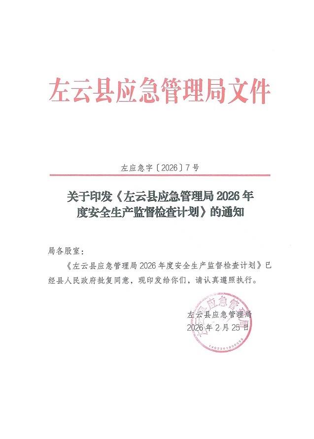 關于印發(fā)《左云縣應急管理局2026年度安全生產監(jiān)督檢查計劃》的通知