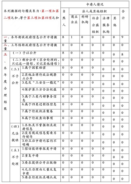 2024年,我局收到要求依申請公開政府信息9個,辦結8件,轉下一年辦理1件;依申請公開行政復議1件,維持1件。
