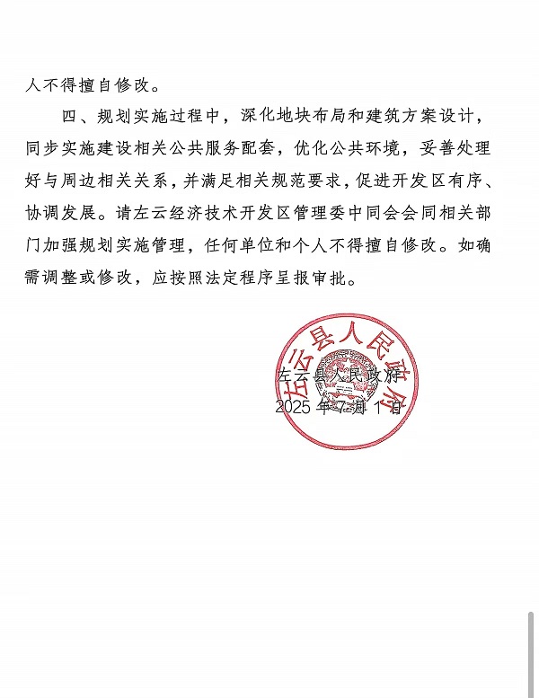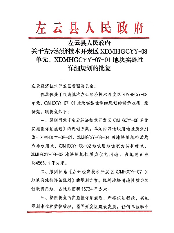 左云縣人民政府關于左云經濟技術開發區XDMHGCYY-08單元、XDMHGCYY-07-01地塊實施性詳細規劃的批復